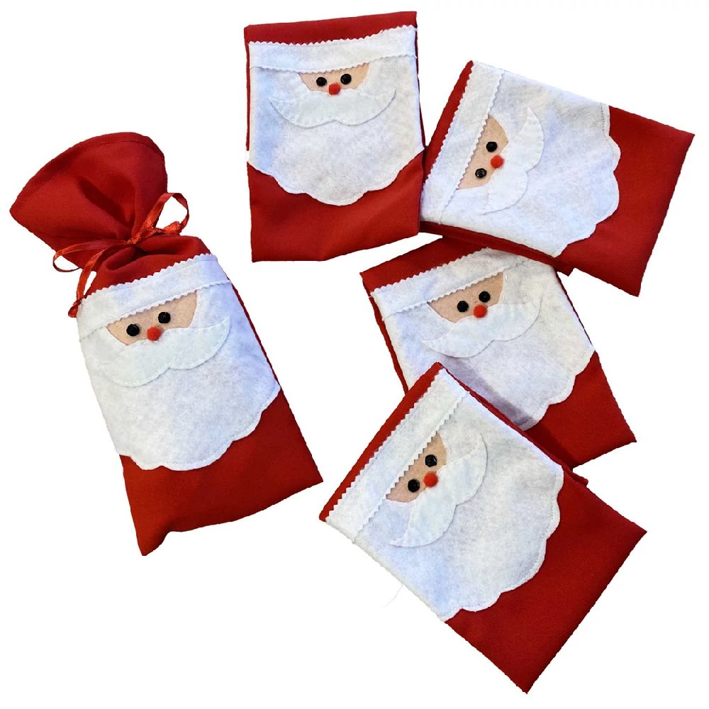 Mikulás tasak 3. Piros Mikulásos mintával, 15 x 35 cm
